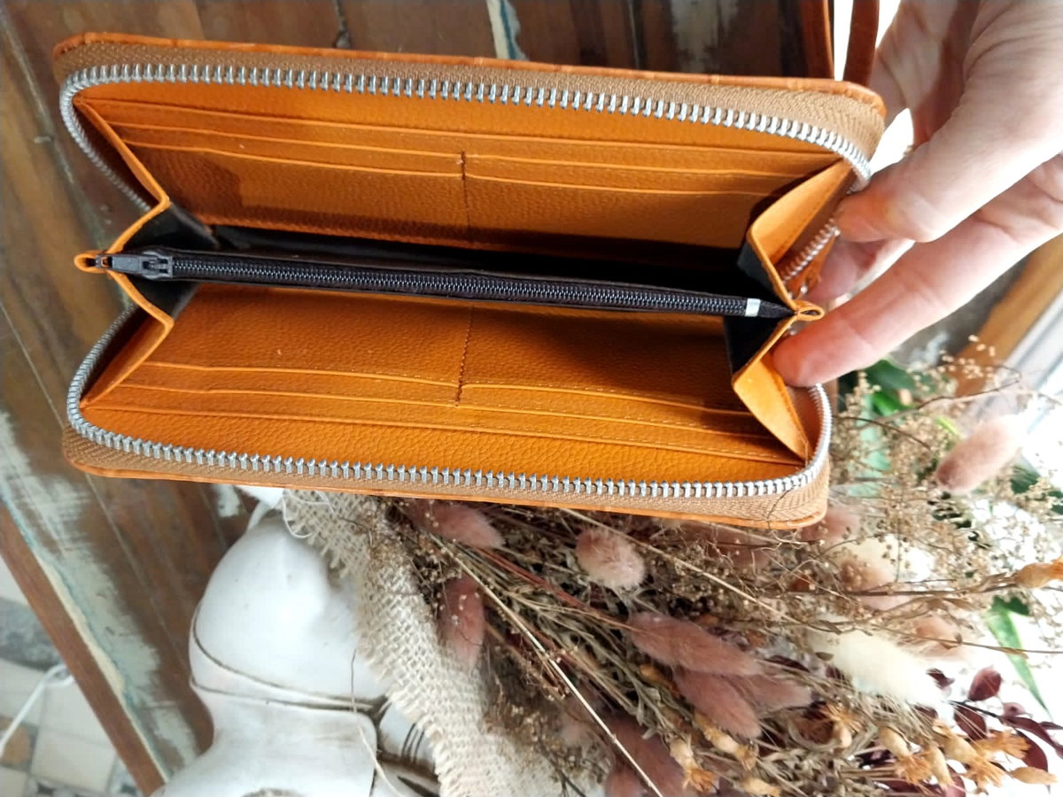Las maxi billeteras están realizadas en cuero vacuno, tienen una medida de 20cm de largo y 10cm de ancho. Cuentan con cierre exterior y un compartimento interior con cierre también. Incluye, además, tarjetero.
