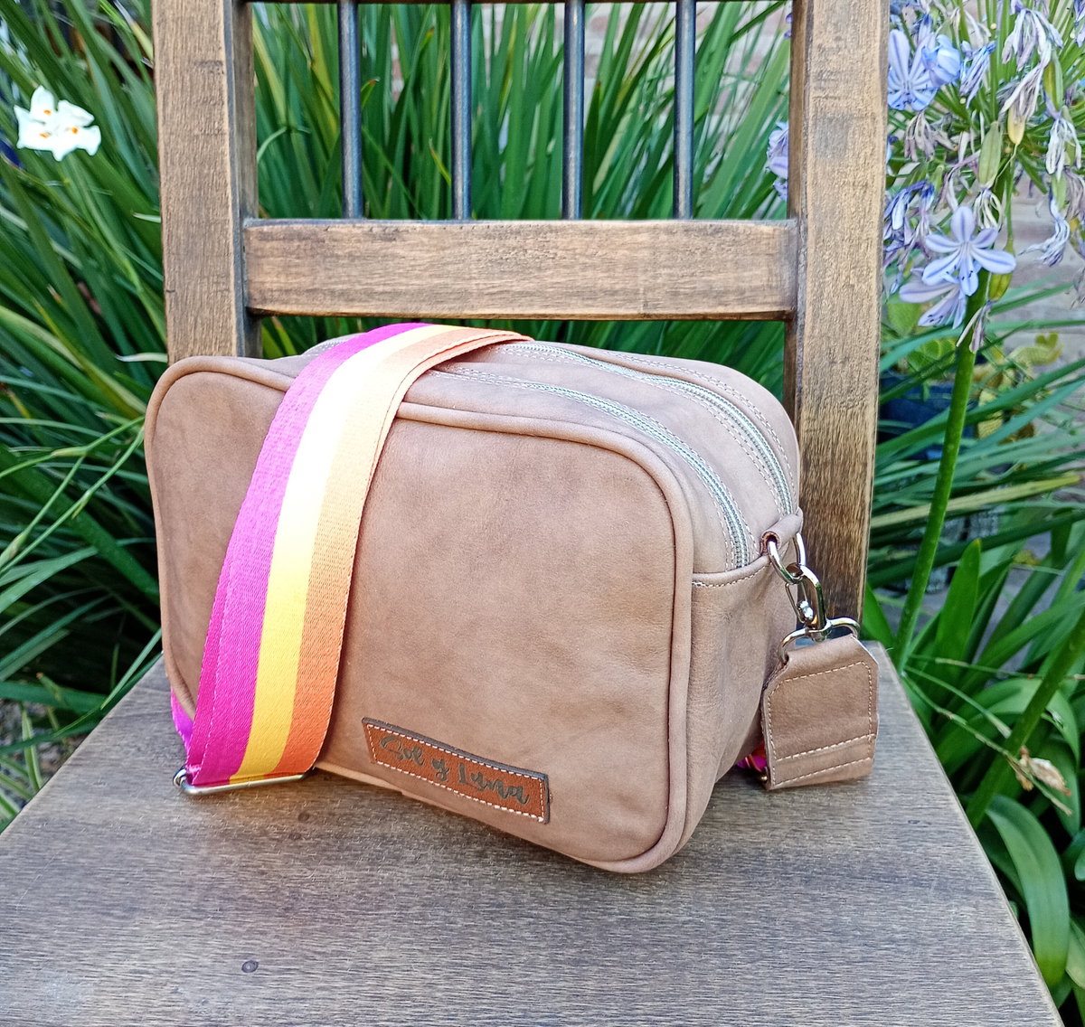 Bandoleras realizadas en cuero vacuno, forradas por dentro. Tienen doble cierre, división interna, podes guardar de todo! La tira sublimada es regulable para que elijas como usarla según tu comodidad.
