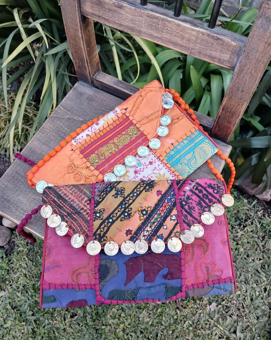 cartera importada, hecha en India. Realizada con telas estilo Patchwork muy coloridas, con bordados increíbles. Están forradas por dentro, tiene cierre, bolsillo interno también con cierre y broche imantado en la tapa. Diseños únicos, no vas a encontrar dos iguales ❤️🧡💙💜💚💛