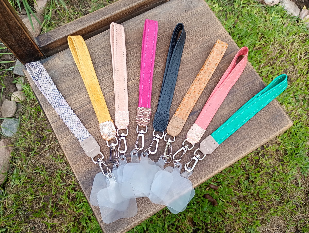 STRAPS para celular con adaptador universal. Accesorio idea para sujetar tu celular de manera facil y cómoda. Realizado en cuero vacuno, con herrajes en color niquel.